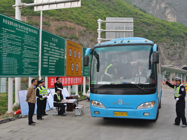 为迎接达陕高速通车,积极做好向外地特别是四川方向的司乘人员讲解我省高速公路通行及限行政策规定,预防和避免征缴纠纷、交通事故发生,保障公路行车安全、畅通。4月19、20日,西镇路政大队联合公安长安分局秦岭隧道警察大队、商洛市交警支队西镇大队,在镇安收费站及南五台、柞水服务区开展“西镇高速路警联合宣传日”活动。