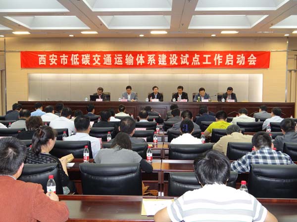 2012年4月26日,西安市政府召开全市低碳交通运输体系建设试点工作启动会,标志着我市低碳交通城市建设活动正式开始。西安市副市长任军号、省交通运输厅正厅级巡视员李永民、西安市交通运输局局长任立新以及西安市低碳交通运输体系建设试点工作领导小组全体成员、市交通运输局领导班子和全市交通系统干部一百二十余人参加了启动会。会议由市政府副秘书长贾军社主持,并邀请交通运输部规划研究院战略研究所谭小平所长在会上进行了低碳交通运输体系建设的讲座。