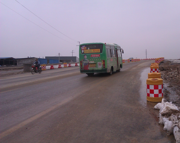 为确保此次交通转换后车辆能够安全顺利通行,管理处进行了多项举措:一是在跨线桥两端分别设置了改道提示牌8处;二是对所有改道口迎车面设置了沙袋防撞墙,并用彩钢板进行围挡并粘贴了反光膜;三是对昆明路右线延伸大桥临时中分带及路缘带用防撞桶进行隔离并对高填方段设置沙袋防撞墙;四是在各变道、弯道处设置了爆闪灯及LED导向牌。