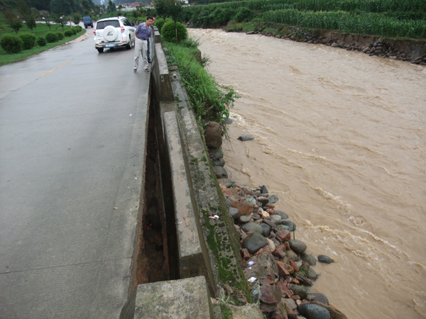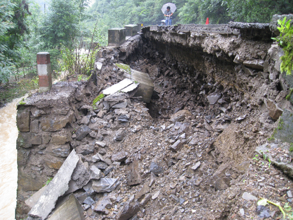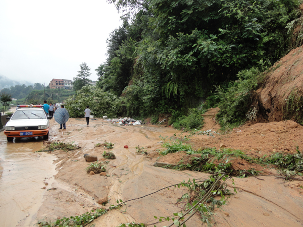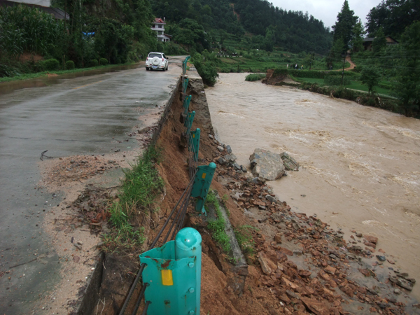 县道102线汉朱路局部路基被冲毁