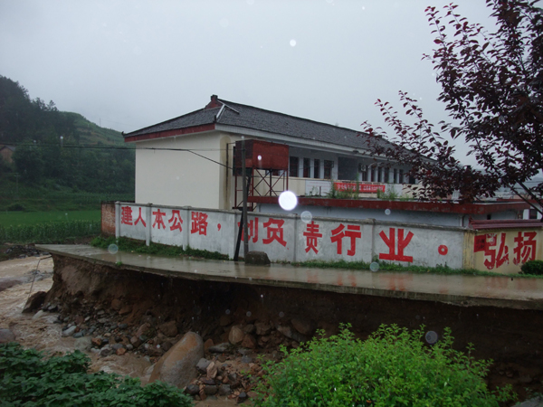 省道211线喜神坝道班房屋悬空