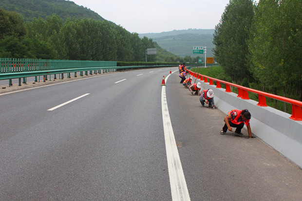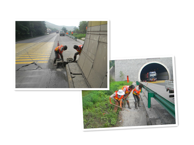 西延高速公路沿线桥梁众多,尤其是特大桥梁密集,在雨季来临之前,西延分公司集中开展了桥梁安全隐患排查,对每座桥梁的桥面系、支座、基础、锥坡等部位进行了细致排查。为管理所配备了小型压路机,推广坑槽冷补工艺,保证桥面坑槽得到及时修补,对连续坑槽则进行工程处理。尝试使用凝结时间快、耐久性好的特种材料“修复王”,修复桥梁伸缩缝。疏通桥梁泄水孔,加固桥梁下部排水设施,对受损的桥台锥坡进行维修。