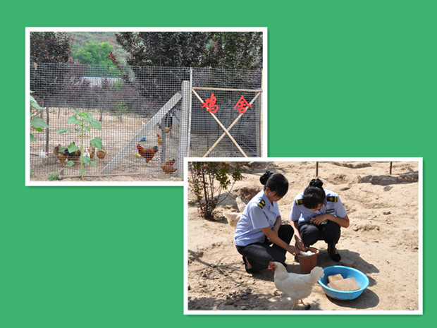在原有菜地基础上管理所还增加了家禽养殖,利用简易建筑材料搭建了鸡舍和兔窝,实行散养式饲养,养殖了鸡30余只、兔子10余只。做好温室大棚蔬菜种植,积极引进新品种,改善种植结构,多选择适合陕北地区气候特点的周期短、产量高、易储存的蔬菜水果品种。