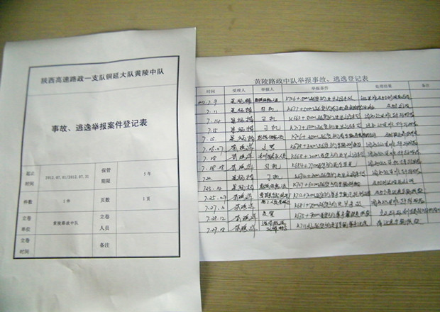黄陵路政中队根据《西延分公司路产逃逸案件奖励办法》,制作了《高速公路肇事逃逸举报联系卡》和 《路产逃逸举报奖励宣传单》,通过在服务区、收费站、沿线村镇将“一卡一单”发放给了沿线村民、清扫工、货运司机、延运客车司机。接到报案后,路政中队会成立破案小组,根据现场肇事遗留情况和举办人提供的信息,做好逃逸追查工作,同时积极联系沿线兄弟单位和收费站进行协查。