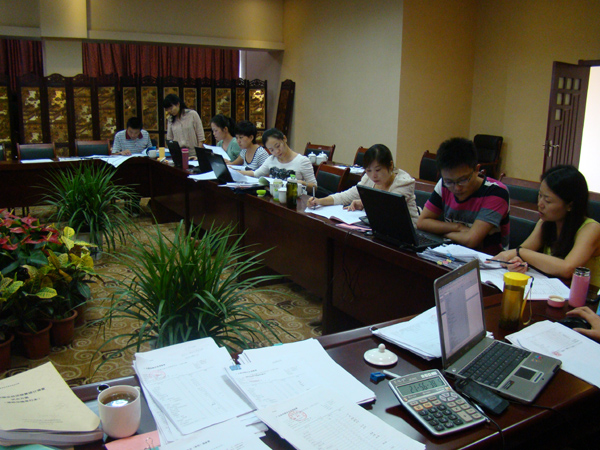 会议期间,审核组工作人员按照三个调查期分别对调查表进行数据整理、审核、复核、回访、数据录入、计算机校核六个审核工作环节,按照调查表之间的合理性与逻辑性进行严格审核,遇到疑问与调查员面对面沟通,对存在问题的调查表进行核实、更正。同时抽取20%的调查表进行了电话回访,以确保我省试点调查数据的真实、可靠。为提高调查表录入的准确性,审核组对录入数据随机抽取30%进行计算机复录审核,保证数据录入零差错。