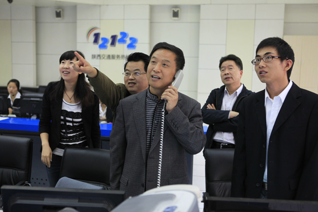 魏培斌副厅长一行到高速公路监控大厅,视察了“12122”热线工作情况。同时视频连线西汉监控分中心、西镇监控分中心,通过高速公路监控系统向值班人员询问工作情况并表达亲切问候。
