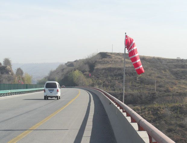 为此,西延分公司通过调研分析,在沿线一些跨径较大、墩柱较高的如洛河大桥、葫芦河大桥、龚家原大桥、老庄河大桥等大桥,增设了风向标,随时为过往车辆提供动态的风向信息,司机可以根据风力大小、方向科学合理控制行车速度,保证行车安全。
