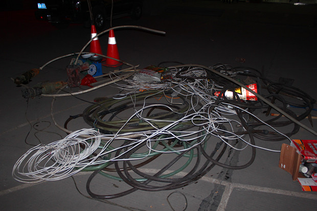 下午14时许,铜川管理所联合高交部门对违法摊点进行清理,经过前期全面摸排,得知多处违法摊点经营者将管线隐蔽于排水沟内,并且用混凝土加固非常不易发现。经过4个小时的清理整顿,共没收水泵2台、水管150余米、电线200余米、称器4台,拆除简易房1间、灯具若干。本次行动,有力维护了路产路权,消除了安全隐患。