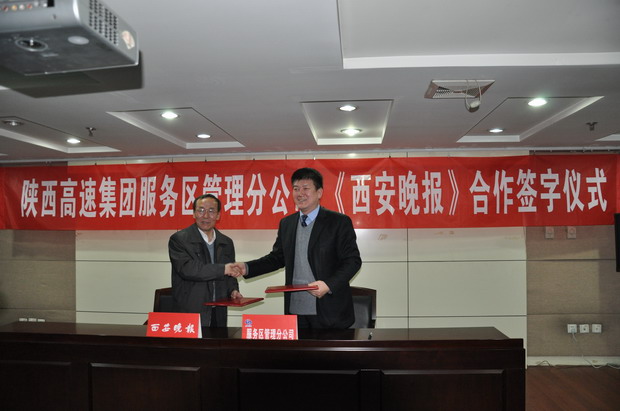 签字仪式上,分公司经理严钊、《西安晚报》执行总编牛延平分别讲话并在合作协议上签字。这次报企合作,主要是发挥服务区点多线长面广、是重要的对外服务窗口、拥有良好的社会资源的优势,发挥《西安晚报》宣传阵地集中、信息覆盖面广以及展示陕西形象的作用,以实现合作双赢的良好目的。合作中,每天向分公司8个服务区总计投放1100份《西安晚报》用于赠阅,为司乘提供信息服务。同时,帮助服务分公司在市场品牌形象树立中准确定位,提高文化服务品位,并在版面上定期刊登高速公路信息和宣传报道,为双方建立一个完整的合作发展平台体系,在合作中突出陕西高速公路服务区“温馨驿站”服务品牌,增强《西安晚报》覆盖率,共同拓展经营渠道,提高双方市场竞争力和品牌形象。