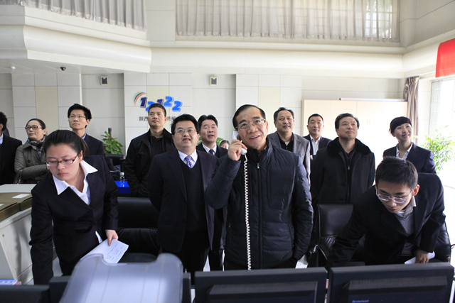 冯厅长一行参观了陕西交通服务热线与高速公路监控大厅,视察了综合监控系统、“12122”热线服务系统工作情况并详细询问了职工系统运行及使用情况。同时视频连线秦岭隧道管理所监控大厅、陕甘界监控室,通过高速公路监控同步查看了实时保畅情况,代表厅党组向值班人员、坚守工作岗位的监控人致以节日的问候和美好的祝福。