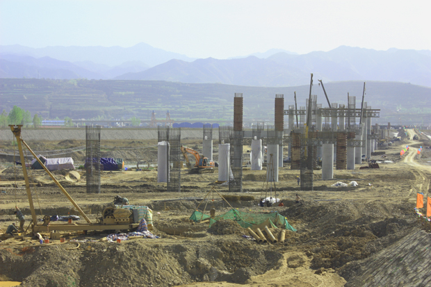 在B-C11合同段渭河特大桥施工现场,从主河道一字排开的桥梁墩柱拔地矗立,吊车正挥舞着巨臂拆装模板,混凝土运输车来回穿梭,施工人员正忙着焊接钢筋笼、浇筑墩柱和承台,施工环节一环紧扣一环,工地现场井然有序。现场负责人介绍说,他们必须在汛期来临前完成主河道内的全部墩柱、承台施工。B-C13合同段唐家塬隧道工程施工稳中求进,隧道开挖、衬砌进度在有序进行。B-C12、 B-C14在有限的施工区域内,路基土石方及涵洞、通道等小型构造物工程正紧锣密鼓的施工中。