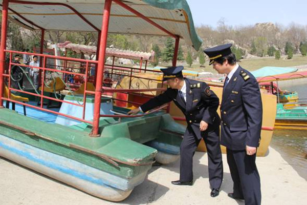 翠华山天池堰塞湖,是长安区内主要的水上旅游景点,湖区现有游船43艘,快艇2艘。随着春季旅游旺季的到来,水上游客人数逐渐增多,为强化水上旅游安全管理,长安区地方海事处对湖区安全进行了检查。一是海事人员对45艘船舶进行了安全检查,主要检查船舶技术状况、船员配备、各类证书等,并对检查中不适航的11艘船舶要求立即报废。二是严查船员资质,对船员技术进行专业考核,合格船员签发适任证书,发放船员服务薄。三是检查水运企业安全制度制定、安全责任落实情况及景区水运安全防护设施和安全警示标志配备等。检查后,该处要求景区管理部门进一步理顺水运企业安全管理体制,落实安全责任,严把船舶质量关、适航关,加大水上法律法规和安全知识宣传力度,强化水运从业人员的安全技能培训,制定切实可行的水上安全应急预案,有效预防和遏制水上安全事故的发生。