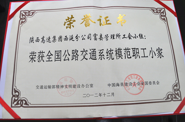 近日,西延分公司富县管理所被交通运输部精神文明建设办公室、中国海员建设工会全国委员会联合授予“全国公路交通系统模范职工小家”荣誉称号。