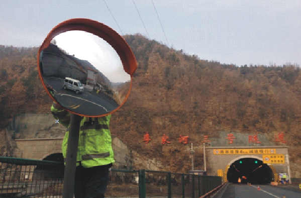蓝商高速李家河隧道站位于蓝商高速K1469处,紧邻黄沙沟隧道西安方向出口,存在视觉死角,隧道站工作人员出入存在安全隐患,也给过往车辆的正常行车带来不便。经考察,蓝商分公司在黄沙沟隧道与李家河隧道站中间路段安装了转角镜,扩大了司机和隧道站工作人员的视野,能够使工作人员及早掌握交通情况,方便驶出隧道的车辆及时做出应急反应,保证了员工人身安全和道路行车安全。