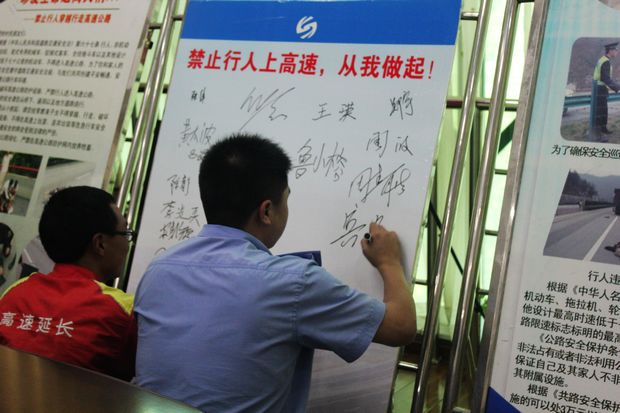 启动仪式上各参与单位做了表态发言,同时与会人员在“禁止行人上高速,从我做起”承诺书中进行了签字仪式,为今后高速公路行人治理工作奠定了坚实的基础。