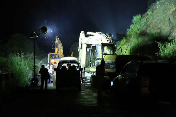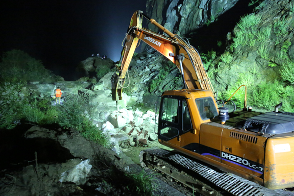 7月4日16点25分,国道316麻坪寺段发生大面积塌方,总方量约1.7万立方米。滚落的巨石将道路全部堵塞,造成316国道K2191+800交通中断,100余辆车被堵。汉中公路管理局接到报告后,立即启动防汛抢险应急预案。该局主要负责人带领相关技术人员第一时间赶赴现场,成立抢险指挥部,研究抢险方案,连夜实地督战。由于坍塌面积巨大,经现场勘察该局按照先抢通后恢复的原则,立即调集留坝段、汉台段挖掘机3台、自卸车20台、空压机2台、发电机组2台、车载应急灯3台等机械设备和抢险物资,调集110余名应急队伍赶赴现场分头连夜进行抢险。汉台、留坝两段路政大队人员立即上路分头配合交警维持交通、劝返车辆。与此同时,各公路段与公安部门联系购置炸药进行巨石爆破。塌方现场落实24小时轮班值守,重点监控险情路段,观测山体变化情况,防止落石伤人,确保抢险人员的生命安全。截止目前,抢险工作仍在紧张进行中。