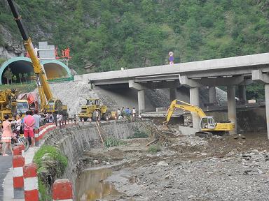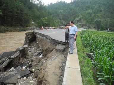灾情发生后,商洛公路管理局技术人员对沿线水毁情况进行了排查,在水毁危险路段设立了警示标志和警戒线,路政人员对水毁段落进行了交通管制,同时安排3个施工队伍共调集大型机械53台,上劳550余人,昼夜不停、连续作战,将沿线道路全部抢通。目前商洛公路管理局正在对路基悬空和挡墙冲毁的危险路段进行临时加固。