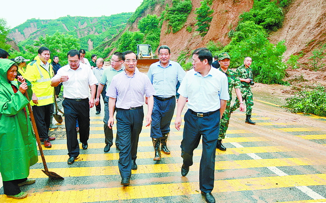 7月22日,包茂高速延安南至洛川段因强降雨造成多处泥石流阻断交通。灾情发生后,省交通运输厅厅长冯西宁,副厅长冯明怀,厅党组成员、省公路局局长王平,省公路局副巡视员万振江,省高速集团董事长靳宏利、总经理王登科和厅机关有关处室负责人迅速赶赴现场,组织抢险保畅工作。
