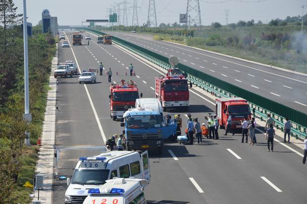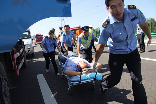 演练模拟情景:上午8:00时,咸阳市气象局发布大雾橙色预警信号,西耀分公司立即启动恶劣天气应急预案,加强路面巡逻引导,实施临时交通管制,但西耀高速公路仍然发生了一起货车爆胎停在行车道上修车,一辆汽油罐车追尾碰撞到大货车左后部,随后一辆满载乘客的中巴车又追尾碰撞上汽油罐车,造成3车连环追尾的交通事故,数十辆汽车被堵,1人当场死亡,2人重伤,多人不同程度轻伤。突发交通事故后,各单位、各部门立即启动应急预案,路政、养护、收费、应急、交警、消防、急救、医院等参演单位按照突发交通事件应急处置预案迅速到达现场,开展抢险、抢救人员、疏导交通、事故勘查、安抚维稳等工作。整个演练过程持续了50分钟,按照演练方案,参演各单位、各部门各司其职、密切配合、高效处置,秩序井然,在最短时间内恢复了道路通行。参与演练活动的三原县政府办公室康承耀主任认为,此次演练活动准备充分、方案合理、形式新颖、贴近实战,提高了多部门联合救援、抢险救灾的实战能力和应变能力,达到了预期效果。陕西高速集团总经理助理叶普万指出,此次演练充分展示了应急救援队伍的高素质、高能力、高效率,路警联动特色鲜明,配合默契,效果明显。演练活动现场经同步卫星直播后,还得到了省、市应急办领导的高度肯定。