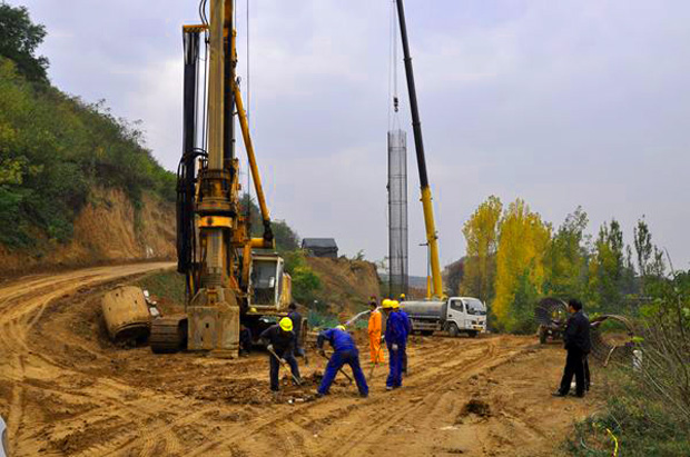 为保证杨家店大桥施工的快速推进,实现业主提出的“实现年底全线拉通”目标,二十局五公司项目部成立以项目经理为组长的杨家店区域施工协调组,专门调用了一台BG25高功率旋挖钻进行桩基施工,施工中实现人、财、物“政策”倾斜,特事特办,做到24小时人停机不歇,以保证杨家店大桥施工的连续施工和按期竣工。