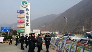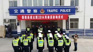 1月16日上午,西镇分公司路政大队联合商洛市高速交警大队西镇中队,在柞水服务区举行“文明出行 平安春运”为主题的2014年春运启动仪式。