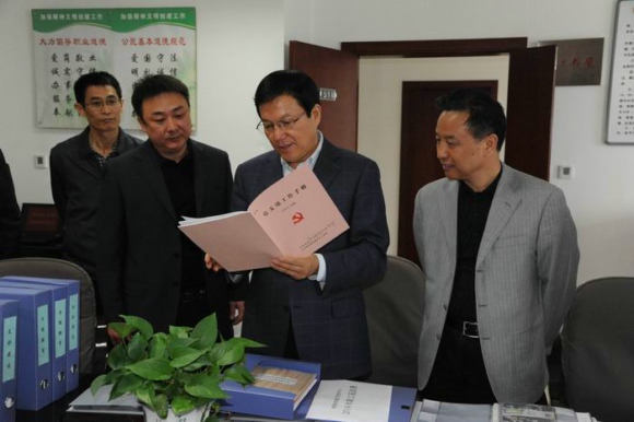 4月14日,省直机关工委常务副书记杨鑫一行莅临信息中心调研基层党建工作,省交通运输厅党组成员、副厅长、机关党委书记魏培斌以及专职副书记王毅陪同检查指导,信息中心党支部书记、主任廖军就中心党支部的发展建设情况做了详细汇报。