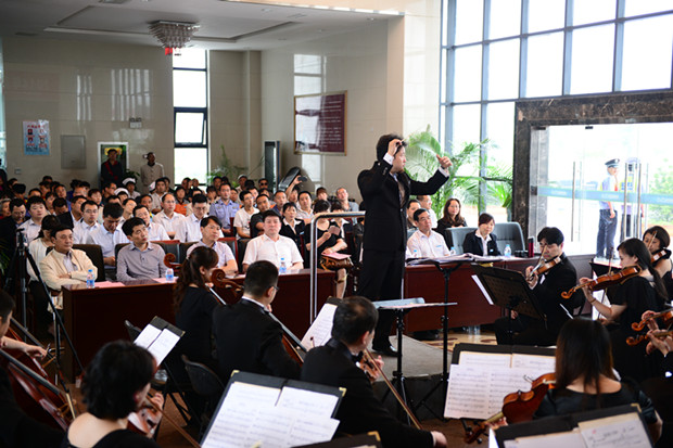 演出活动内容充实,精彩纷呈。音乐会在优秀青年指挥家田凯华,指挥的经典曲目《春节序曲》中,拉开了帷幕。期间共演奏了十几首曲目,其中有大家耳熟能详的《山丹丹开花红艳艳》和《走西口》等经典曲目,演奏过程中,华丽、高雅的格调,让观众的掌声热情连绵。最后,在一首激扬动听的《蓝色多瑙河》中,音乐会圆满的画上了句号。