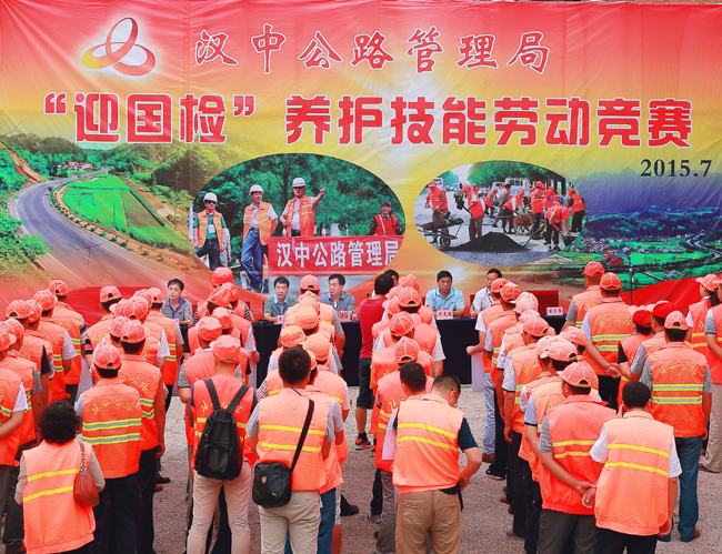 为进一步提高公路养护质量与水平,激发汉中公路行业大干快上劳动热情,组织动员汉中公路行业干部职工以奋发有为的精神风貌迎接“十二五”全国干线公路大检查,7月27日,汉中市总工会、汉中公路管理局共同在国道108宁强滴水铺路段举办了以“迎国检”为主题的公路养护技能竞赛活动,来自汉台、南郑等11个县区公路管理段100余名养护职工顶着酷暑展开了激烈角逐。