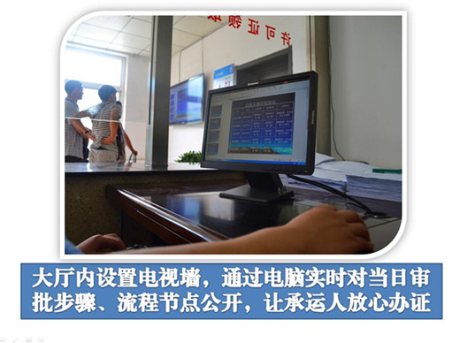 三是强宣传,政策公开透明、司乘满意好评。潼关省界办证点充分利用停车区及办证点4处宣传栏及LED显示屏,河南豫灵服务区设立专栏,对超限车辆许可办证政策、提交资料、办理程序、办理时限、收费标准、监督电话及各条高速线路通行等内容进行广泛宣传,利用办证大厅1处电视墙加强对初审、批复等各个环节审批的公开公示,通过电脑实时对当日审批步骤、流程节点公开,加大超限运输车辆办证、监护车辆审批流程及业务办理的透明度。办证人员加强与上级部门的联系,及时了解掌握全省高速公路各路段最新的路况信息,加强业务办理的透明度,消除承运人的疑惑,做到办证工作公开、准确、高效审批,实现了政策透明化、工作程序化、服务规范化、管理科学化的管理标准,以实际行动践行“明白办证、放心办证、满意办证”的服务理念,受到了过往司乘人员的一致好评。