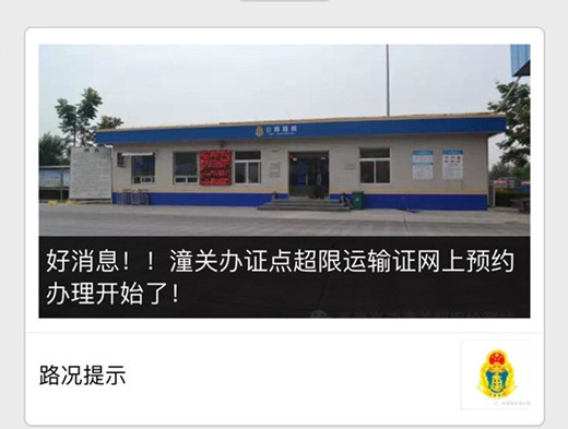 六是重创新,推广网络预约、超限审批快捷。2016年3月10日潼关办证点开通了“超限运输证网上预约办理”服务,大件运输承运人通过“潼关办证点预约办证QQ号”,提前填写《陕西省超限运输车辆行驶公路申请表》、《超限运输车辆通行告知单》,进行申请信息的网上提前审核,可立即知晓是否符合办证条件、申请材料是否齐全。从传统的柜台申请到网上申请,网上预约办证的实行有效缓解了办证大厅业务受理人员集中拥堵的情况,有利于潼关办证点对办证大厅的业务量进行动态管控,满足了广大办证承运人日益增长的办证需求,缩短了广大承运人办证等候时间,打造了规范、高效、便捷的网上审批服务平台,全面提高了超限运输证办证效率和便民服务水平,受到了办证承运人的称赞和好评。