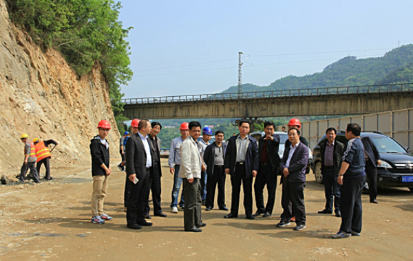 4月27日,安康市委常委、副市长赵俊民在安康市交通运输局局长江家安、副局长兼项目指挥长王启仲及石泉县委常委、副县长陈达斌等陪同下深入国道541石汉段施工一线检查、指导工作。