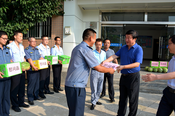张红书一行为阿房宫收费站、陈仓收费站、陇关收费站,宝汉公司及宝鸡过境项目建设管理处一线职工发放了慰问金及防暑降温品。耐心听取了职工们的工作汇报和发言,提出了解决思路及办法。