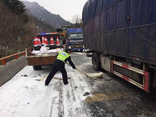 省高速集团闻雪而动,迅速启动应急预案,动员养护、路政人员和除雪设备上路作业,全力做好除雪保畅和服务保障工作。一是配合交警部门在涝峪口主线立交及宁陕服务区设置管制点处,临时对主线进行封闭、分流。加紧协调河南方面,引导西潼高速出陕车辆从华阴收费站劝返。二是针对隧道出入口、桥梁桥面两侧弯道、阴坡路段及匝道等重点点位进行融雪剂撒布,组织人员重点对爬坡打滑车辆进行融雪剂填撒。三是做好受阻司乘安抚工作,安排管理所、服务区为拥堵路段司乘送去热水、面包、方便面等食品,确保有热水喝、有饭吃。四是加强与交警部门联勤联动,做好故障货车清障拖移,利用沿线情报板、收费站、服务区、广播电台及时发布路况信息。