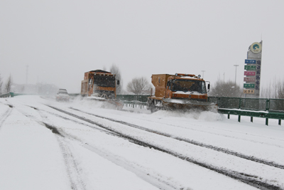 雪情就是命令,交通集团各运营单位结合以往除雪保畅经验,采取“机械除雪为主,人工为辅”的除雪保畅举措,安排养护、路政、各收费站人员全面开展除雪防滑作业,在各路段主线和匝道采取铲雪车除雪并撒布融雪剂,同时对爬坡、下坡路段,桥面、纵坡、弯道等重点路段和部位进行密集撒布融雪剂、防滑沙。在收费站广场和服务区广场开展人工除雪作业。路政部门与高速交警坚持联勤联动,加大巡查频次和力度,对重点路段实施24小时不间断巡查,及时处理突发情况,救助在湿滑、爬坡路段无法前行的车辆,确保车辆安全通行。各监控分中心积极利用路网综合监控关注道路实时情况,及时更新电子情报板,对外发布最新路况信息。同时,加强政务值守和信息报送,密切关注天气变化,及时报送道路通行信息,保障信息渠道报送畅通。降雪期间,一些小客车、大型货车滞留在服务区广场,服务区及时为滞留司乘提供开水、维修工具、推车、交通地图册、最新路况信息等,维护良好的交通秩序。