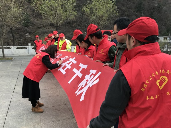 二是开展签名活动。青年志愿者积极邀请过往群众在印有“保护水源 功在当代 利在千秋”字样的横幅上签名,引导大家树立保护水资源、改善水环境、恢复水生态的环保意识,养成惜水、爱水、节水的良好习惯。