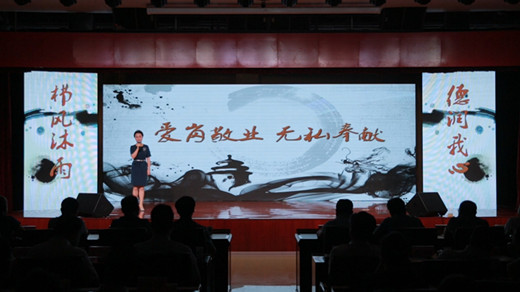 本期“道德讲堂”由汉宁分公司承办,活动在主题诗歌朗诵中拉开序幕,由6位员工讲述了汉宁分公司爱岗敬业模范马斐、孝老爱亲模范杨群的事迹及汉宁分公司十年发展历程,最后用舞蹈演绎了《公民道德歌》,展现了道德之美,传播了核心价值。感人的事迹、精彩的表现和新颖的形式感动了在场观众,受到大家高度评价。
