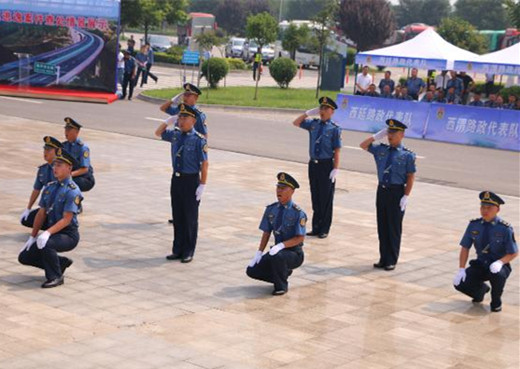 此次技能比武紧密结合路政工作,分为单个军人队列动作和交通指挥手势两个部分进行比试。每支代表队由10人组成,其中1名为指挥员。活动开始后,由80人、36人组成的队列方阵、交通指挥方阵分别进行分列式和指挥手势的展示,而后按照抽签顺序各支代表队展开角逐。期间,西延、西汉分公司带来了逃逸案件查处和道路保畅应急处置演练。经过激烈角逐,最终西渭、西略路政代表队并列荣获一等奖,西耀路政代表队荣获二等奖,宝鸡、西汉和西延路政代表队荣获三等奖。