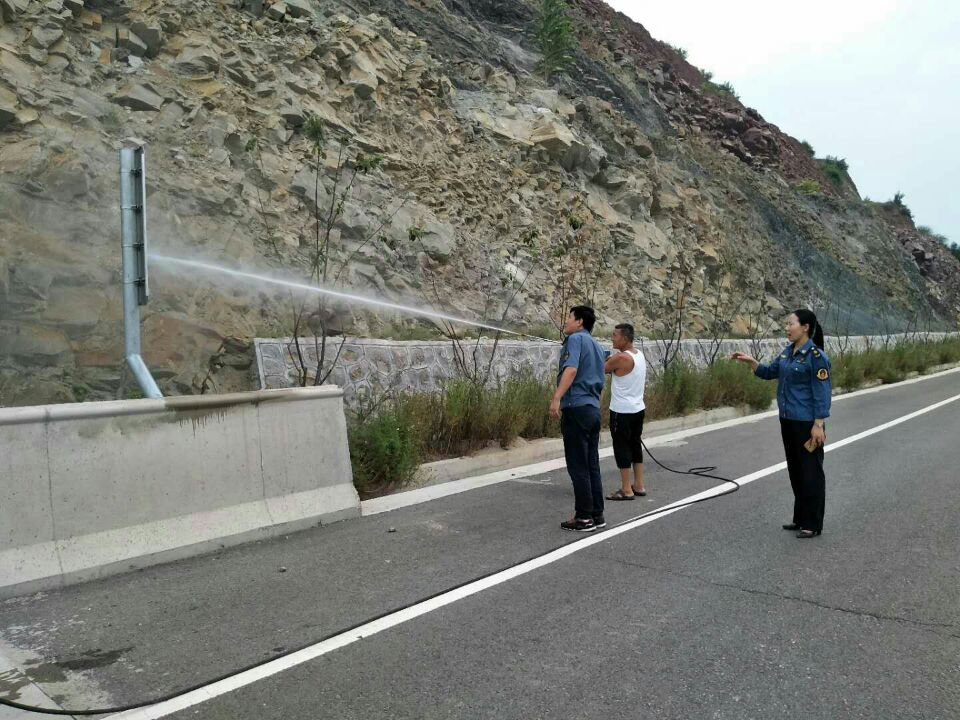 沿黄观光路韩城北段有三座煤矿和多处煤场,沿线运煤车辆较多,为沿黄观光路韩城段管养工作重点。根据市委市政府污染防治百日攻坚行动及“重走东渡路”活动安排,该局动用多台养护吸扫车、高压冲洗车对北段公路沿线及隧道路面进行吸扫、冲洗清洁作业,对桥梁栏杆、防撞墙、标志标牌等进行冲洗清洁,组织人工对道路两侧水沟淤泥进行清理;路政大队加强沿线巡查力度,对货运车辆要求按规定采取覆盖、遮蔽措施,严防路面抛洒污染,对非公路标志标牌进行依法取缔。同时,组织工队对近期强降雨造成的南北两段水毁路段进行修复。为推进沿线环境卫生整治工作持续高效进行,该局主要领导每天深入一线督导检查各项工作落实情况,及时发现和解决工作中存在的问题,先后多次深入沿线厂矿企业,耐心向企业负责人宣讲涉路相关政策法规,协调解决路面超限超载及抛洒污染问题,动员他们积极配合沿线道路环境综合整治工作。