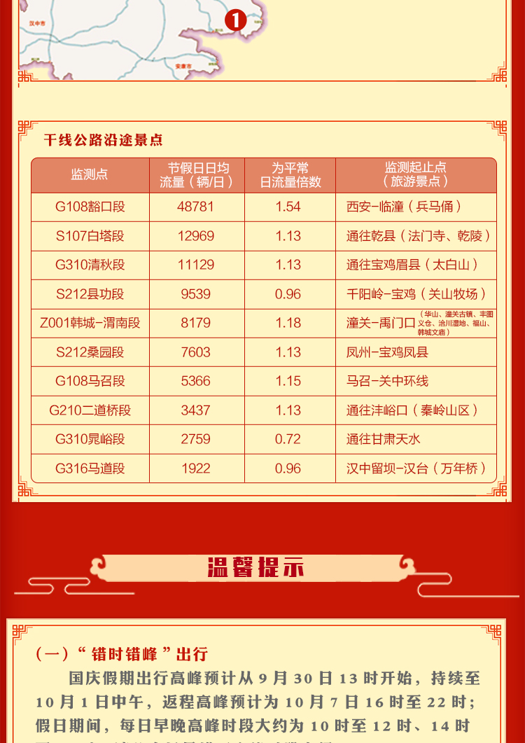陕西省2018年国庆假期公路出行提示