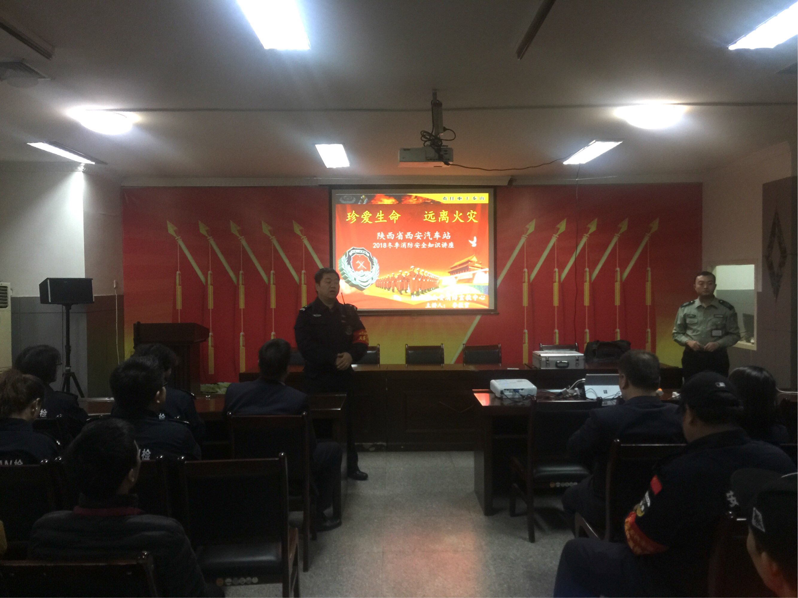 为切实增强消防安全“四个能力”建设工作,进一步提高车站职工应对突发火灾的处置技能,根据消防安全宣传月工作方案安排,站安委会于2018年11月5日下午13:30在多功能厅聘请陕西省众安消防宣教中心专职讲师李常亮教官对站义务消防队员、各部门在岗职工及相关经营摊点业主90余人进行了消防安全知识培训工作,培训内容主要以消防安全基础知识,自救技能以及消防设施设备的使用方法为主,结合近年来血淋淋案例教训,深刻警示了现场的每一个人熟知消防安全基本知识是对自己,对家人的保护。