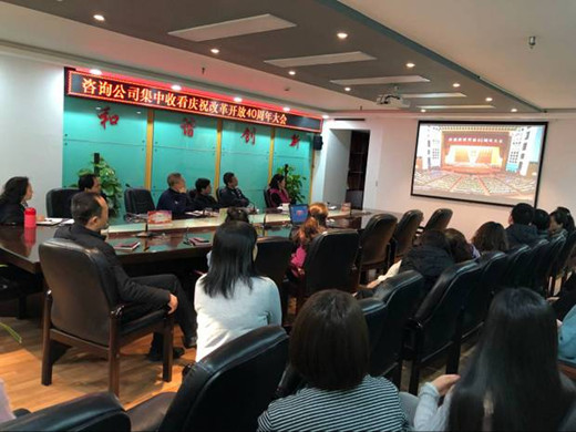 12月18日,省高速集团组织广大干部职工集中收看了庆祝改革开放40周年大会实况直播,认真学习领会习近平总书记的重要讲话精神,高举改革开放旗帜,聚焦交通强省建设,推进集团公司提质增效高质量发展。