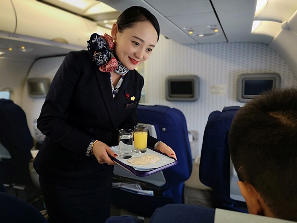 “作为一名‘空中摆渡人’,我倍感骄傲与自豪,因为我的职业体现着奉献和担当,收获着真诚与善良。不忘初心,砥砺前行,在任何时候我都会坚守在万里高空做您的‘空中安全守护者’,用自己的默默的坚守和细致的服务,温暖您的空中旅程!