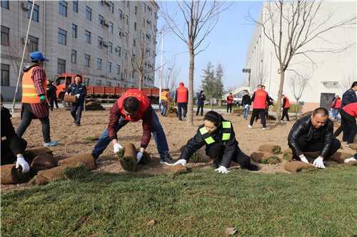上午一大早,在西咸北环分公司机关院内的植草绿化点内,1800余平方米的土地早已开挖平整,3辆装载着数十吨新鲜草皮的卡车“严阵以待”。一名现场工作人员介绍道:“原先,由于这片区域没有进行过集中绿化,所以杂草丛生,严重影响了分公司院内的整体环境和美观”。今年,为进一步扩大分公司绿化面积,营造良好的办公、生活环境,西咸北环分公司以“献礼祖国70华诞系列活动之‘美丽中国——共植一片绿色,呵护美丽家园’”活动为契机,由分公司党委牵头,机关各部门联动、各单位通力配合、全体动员、全员参与,积极掀起分公司范围内植树绿化新热潮,用实际行动为单位增添绿色。