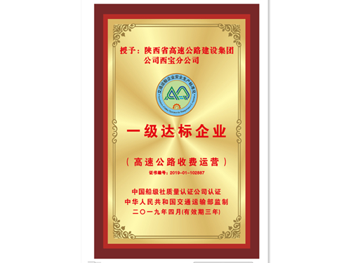 2019年4月15日,西宝分公司以939分通过了交通运输部认证的高速公路收费运营企业安全生产标准化建设一级资质,成为全省高速公路运营企业首家获此殊荣的单位。