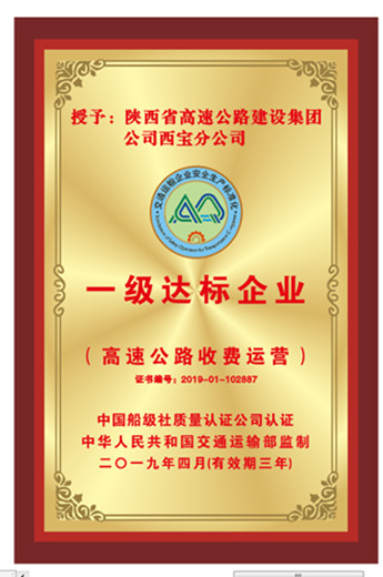 日前,西宝分公司以939分通过了交通运输部认证的高速公路收费运营企业安全生产标准化建设一级资质,成为我省高速公路运营企业首家获此殊荣的单位。