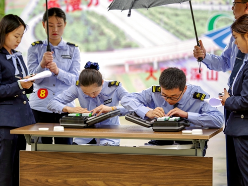 5月28日,商漫分公司举办2019年收费业务技能大比武活动。活动邀请省高速公路收费中心、交通集团收费管理部、商洛市交警支队高速大队以及商洛片区各兄弟单位领导担任比赛评委,设立评委组、仲裁组、现场组、竞赛组、宣传组、后勤组等6个职能小组协同工作,来自所辖各收费站的6支代表队120余名选手在队列队形、点钞点卡、笔试答题、车道操作、才艺展示等五个项目中展开角逐。