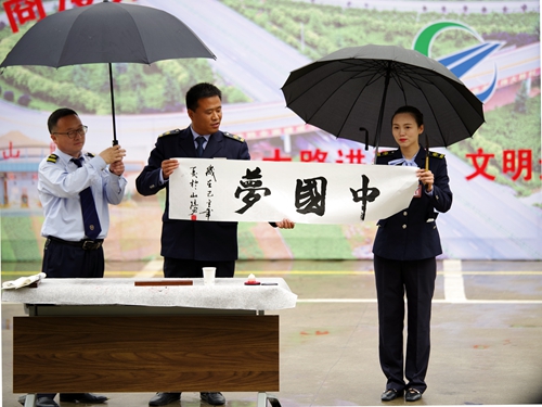 在才艺展示环节参赛队伍八仙过海、各显神通,节目异彩纷呈。漫川关收费站的歌伴舞,巧妙融入了收费服务的文明用语和礼仪动作,充满了青春活力;天竺山收费站的小品诙谐幽默,为收费员真实的故事披上了艺术的轻纱,让工作中的点滴温情又一次得到升华;高坝收费站收费员现场挥毫的书法作品《中国梦》,加上一首《我骄傲,我是中国人》的配乐诗朗诵,真挚地抒发了交通人无比浓烈的爱国热情。