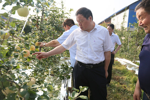 靳宏利董事长来到关庄物流园万吨冷库项目施工工地,听取了公司、施工方和监理方的工作汇报,详细询问了工程进度、质量管控、工期安排,并就急需解决的道路等问题和地方政府进行了协调。在有机苹果示范园和3000吨果品气调库调研时,他查看了苹果长势,向示范园负责人及工人了解了苹果树的品种、产量、收益、劳动用工和土地流转等情况。