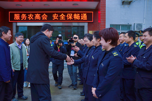 魏稳柱副秘书长与大家一一握手,并代表农高会组委会对参与第26届杨凌农高会保畅人员的辛勤付出表示感谢。同时指出,杨凌农高会保畅任务艰巨,责任重大,但职责光荣。希望大家继续保持良好的精神面貌和工作状态,再接再厉,全力以赴确保交通要道安全畅通。他还提醒大家在气温下降的情况下,做好保暖措施。