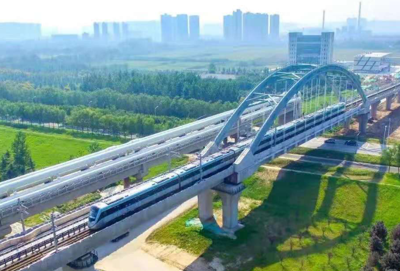 机场城际连接西北地区规模最大的高铁站西安北站和西北地区最大的空运枢纽西安咸阳国际机场,是陕西省“十三五”规划重点项目。建设期间,线路成功穿越西安咸阳国际机场停机坪,并将沉降控制在10mm以内,为我国在航空敏感区同类型地下综合交通枢纽建设提供了宝贵经验。同时还创造了盾构掘进49.5米、成环33环的全国同类地铁盾构施工日掘进最高纪录。